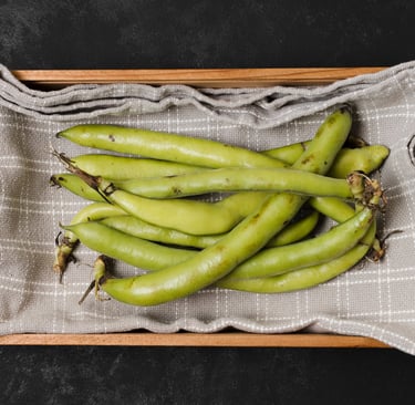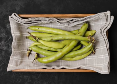 "Taze, dolgun taneli bakla. Zeytinyağlı ve sıcak yemekler için ideal kalite"